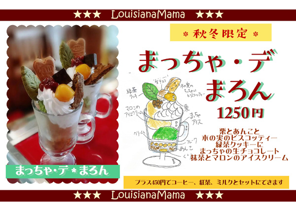 ![]() 風味豊かな栗のアイスクリームに 濃厚で味わい深い抹茶のアイスクリーム♪ 一粒栗に、つやつやの粒あん 抹茶の生チョコに緑茶のクッキー アクセントに小さな木の実のビスコッティーを添えてみました かなりリッチなマスターの推しパフェです (*^_^*) |