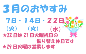 三月もいよいよ後半戦