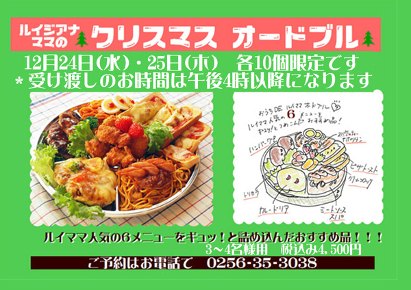 期間は12月1日から25日まで。 お電話でのご予約をお願いいたします。