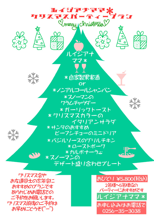 クリスマス当日はもちろんですが、お友達同士でのお食事会などにもおすすめです★