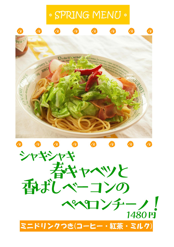 今が旬の春キャベツをたっぷり使った期間限定のペペロンチーノ!