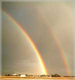 | 14日の朝、大きな大きな虹をみつけました♪ 片方だけでなくて、ちゃんと、橋みたいに架かっていて しかも、なんと!ダブルで!!! アレッ、少しはしゃすぎ? 右の写真 うっすらと、二本の虹が写ってるのおわかり頂けますか? 全体を、一枚の写真の収めたかったのですが 大きすぎてフレームからはみ出してしまいました それで、苦肉の策で右端と左端を撮ってみました・・・ 三十分間位は、見えていたかな 朝の忙しい時間帯だったから、気がついた人少なかったかな・・・ |